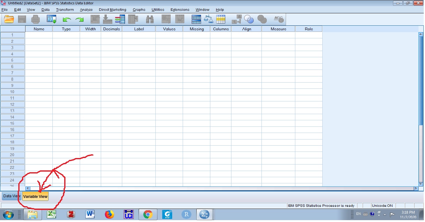 Once you are ready with your data collected through a questionnaire, open SPSS on your computer. Select the variable view from the bttom left tab.